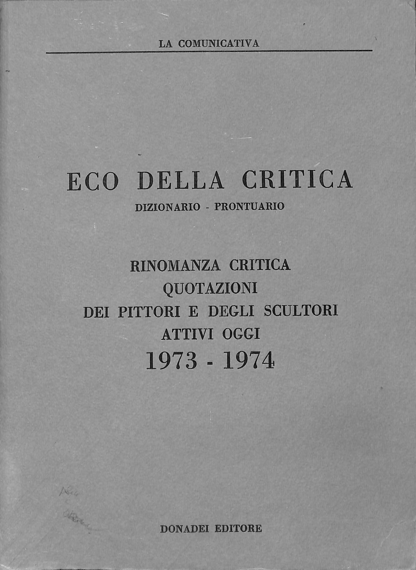 Eco della critica : dizionario-prontuario : rinomanza critica, quotazioni dei pittori e degli scultori attivi oggi : 1973-1974
