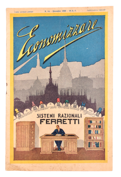 ECONOMIZZARE. Le fatiche, il tempo, lo spazio, il denaro. Periodico Italiano della Moderna Tecnica d'Ufficio. N. 14. Dicembre 1930. Sistemi razionali FERRETTI. Con il CALENDARIO dei 12 mesi per l'anno 1931 al piatto posteriore.