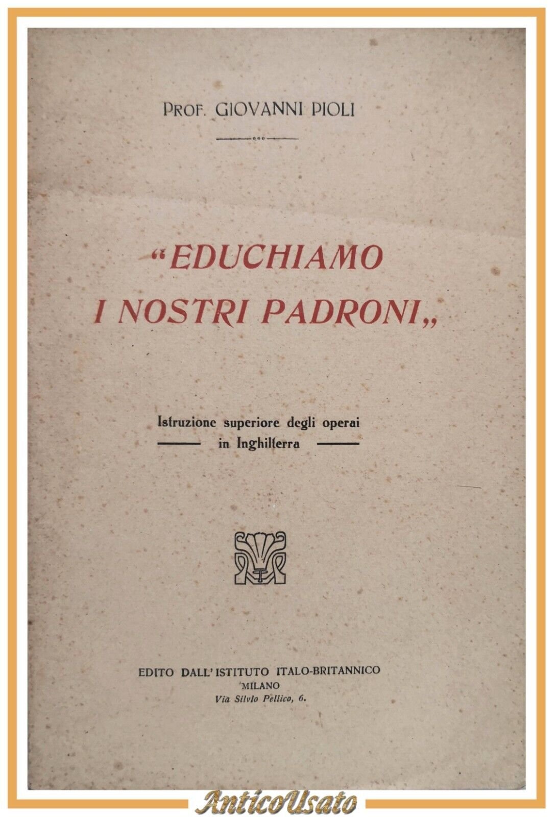 EDUCHIAMO I NOSTRI PADRONI di Giovanni Pioli 1919 Istituto Italo-Britannico Libr