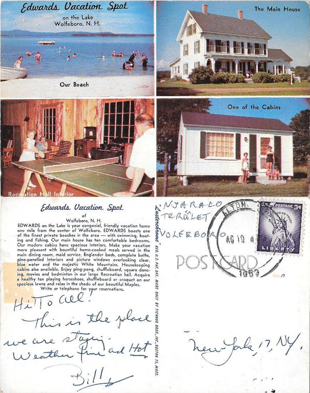 Edwards Vacation Spot. On the Lake of Wolfeboro N.H. Viaggiata 1959