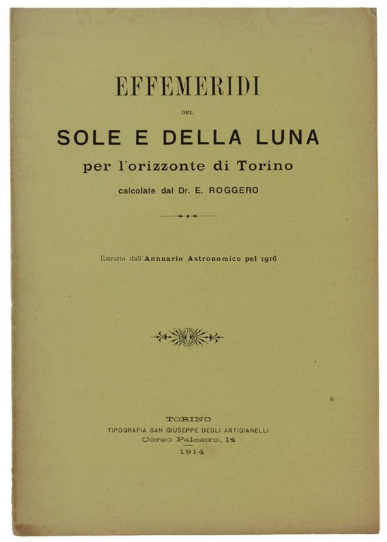 EFFEMERIDI DEL SOLE E DELLA LUNA PER L'ORIZZONTE DI TORINO. Estratto dall'Annuario Astronomico pel 1916