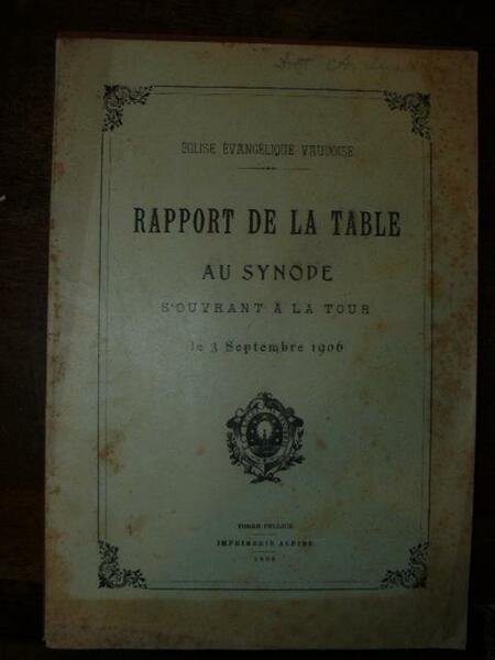 Eglise Evangelique Vaudoise. Rapport de la Table au Synode s'ouvrant a la Tour le 3 Septembre 1906