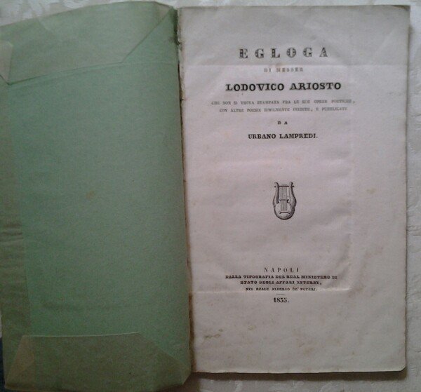 EGLOGA DI MESSER LODOVICO ARIOSTO. CHE NON SI TROVA STAMPATA FRA LE SUE OPERE POETICHE, CON ALTRE POESIE SIMILMENTE INEDITE, E PUBBLICATE DA URBANO LAMPREDI.