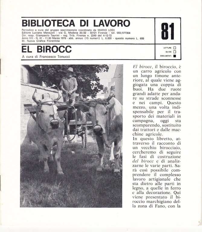 Biblioteca di Lavoro a cura del gruppo sperimentale coordinato da Mario Lodi - Seconda Serie - BL 81