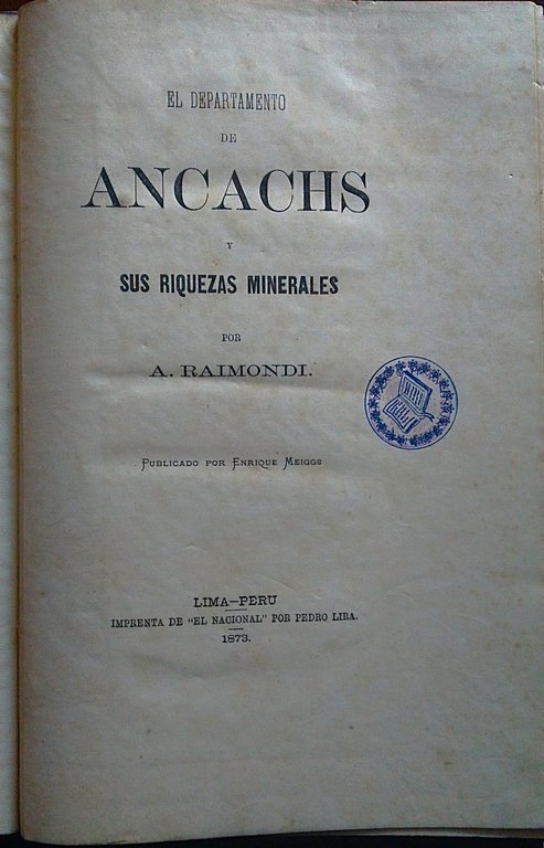El departamento de Ancachs y sus riquesaz minerales. Publicado por Enrique Meiggs.