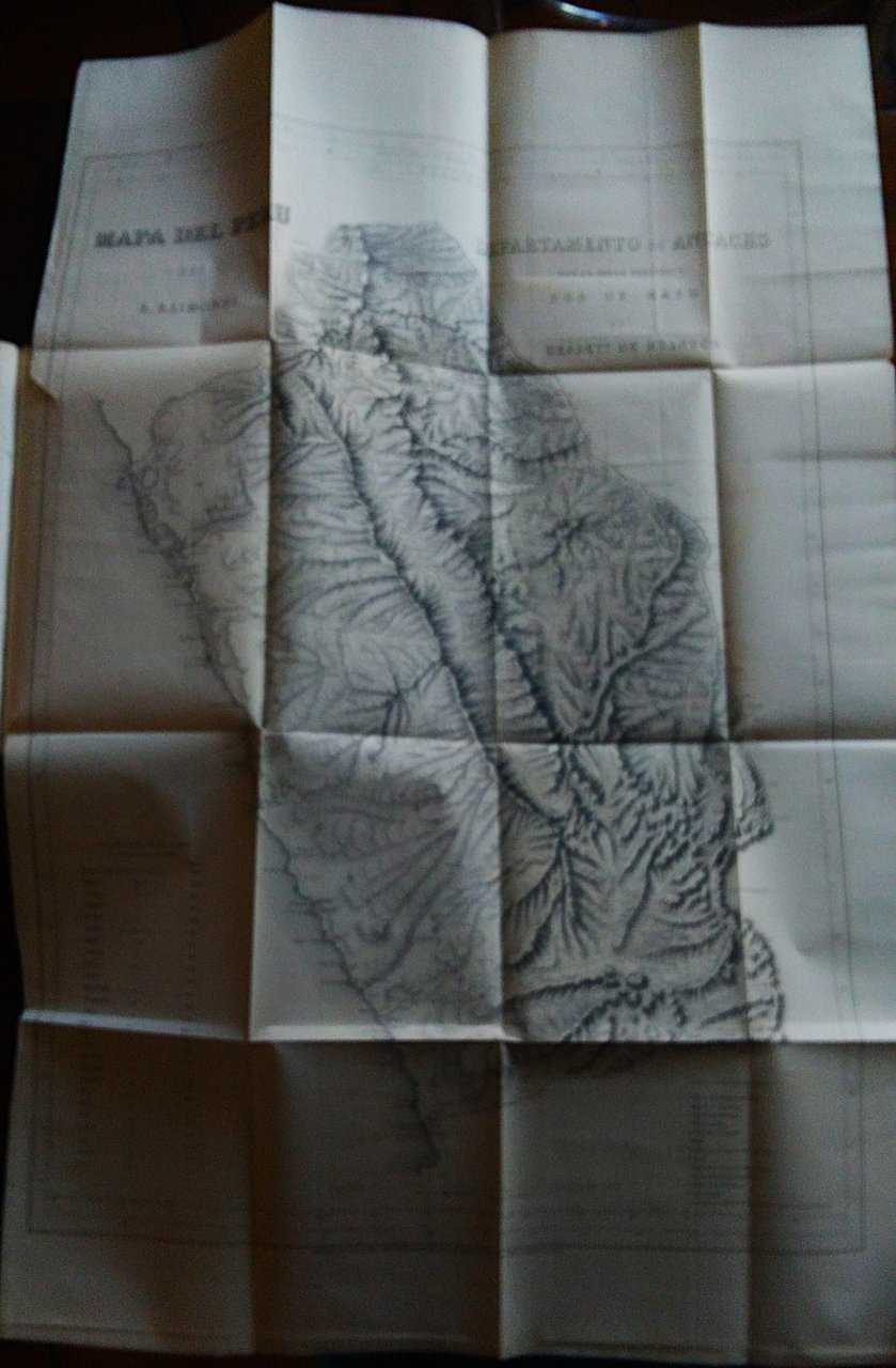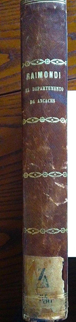 4°, cm 30 x 20, pp. (2), II, 651, (1), una grande carta (cm 65 x 99) "Mapa del Peru por A. Raimondi - Departamento de Ancachs con la nueva provincia dos de Mayo del depart: De Huanuco". Legatura coeva in mz. pelle, titoli e fregi in oro al dorso. Toccature e lievi abrasioni alla legatura, 2 strappetti senza danno all' attaccatura della carta, timbro di collezione al frontespizio, bella copia ad ampi margini. Non comune.