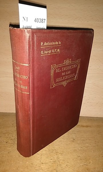 JARDÍ, Antonio de la C. EL DERECHO DE LAS RELIGIOSAS según las prescripciones vigentes del código canónico y civil por el Rdo. P. Fr. ---, O.F.M. Seráfica. Vic 1927 2ª ed. 463 p. (19,5 cm) Enc. tela. Sello de anterior propietario N1 (Ref.40387) religion catolicismo derecho orden religiosa