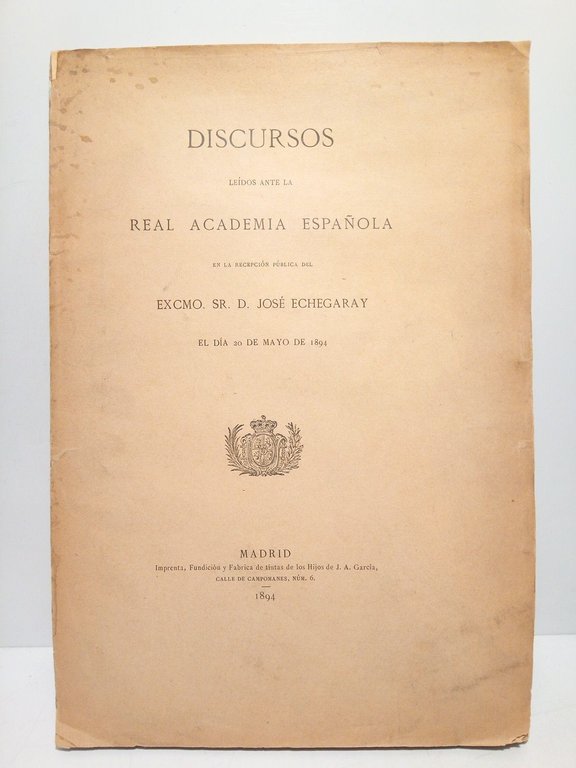 El estado caótico en que hoy se halla la crítica literaria, indicando a la vez el origen de situación tan triste.(Discurso de ingreso en la Real Academia Española el día 20 de mayo de 1894. CONTESTA: D. Emilio Castelar)