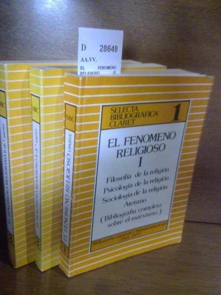 AA.VV. EL FENOMENO RELIGIOSO (3 VOLUMENES). BIBLIOGRAFIA ESPAÑOLA E HISPANOAMERICANA (1964-1978) Claret. Barcelona. 1978 246+ 288+ 288 p. (18 cm) Rustica. Filosofia de la religion, psicologia de la religion, sociologia de la religion, ateismo, bibliografia completa sobre el marxismo. Las religiones actuales: hinduismo, budismo, confucianismo-taoismo, judaismo, cristianismo, islamismo. D (Ref.28649) bibliografia religion historia religiones