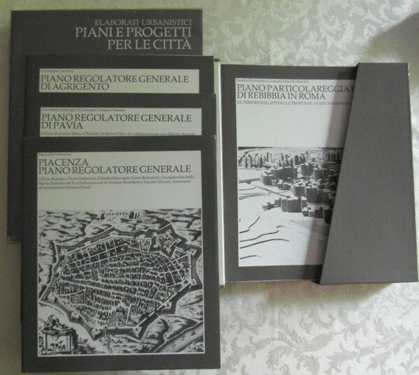 Edizioni Over 1980. In - 4, custodia contenente 10 fascicoli di 20 pagine circa cadauno. Le citta' oggetto di studio sono: Pavia, Roma, Faenza, Agrigento, Gela, Matera, Galatone, Benevento, Ravenna, Piacenza. In buono stato.