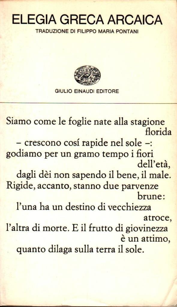 "Elegia greca arcaica", edizione giugno 1972, pp. 199, formato 10,5 x 18.