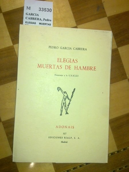 GARCIA CABRERA, Pedro ELEGIAS MUERTAS DE HAMBRE. Homenaje a la UNICEF Rialp. Madrid. 1975 38 p. (17 cm) Rustica. Intonso. Sello ant. prop. Col. Adonais. 327 M (Ref.33530) poesia vallehermoso la gomera canarias