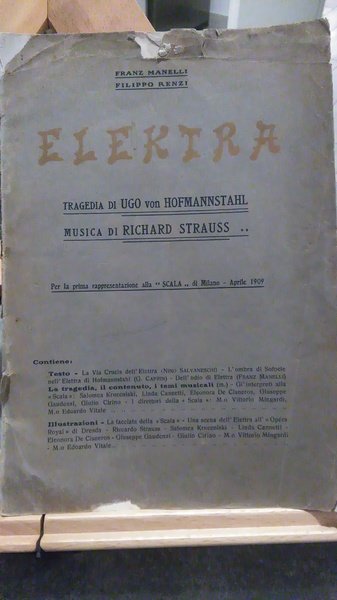 ELEKTRA, TRAGEDIA DI UGO VON HOFMANNSTAHL, MUSICA DI RICHARD STRAUSS