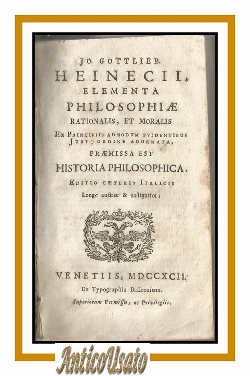 ELEMENTA PHILOSOPHIAE rationalis et moralis di Heineccii 1792 libro antico