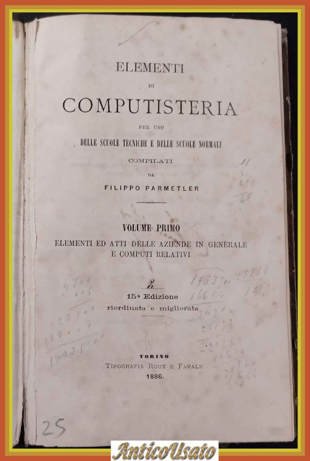 ELEMENTI DI COMPUTISTICA 3 VOLUMI IN 1 COMPLETO 1886 Roux Favale Libro antico