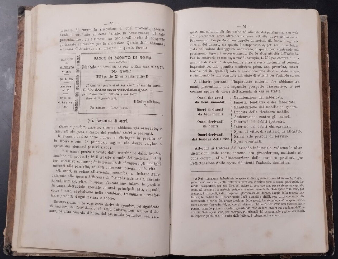 Torino Tipografia Roux e Favale, 1886 . IV, 171 +IV, 91 + IV, 168 pagine ,figure in bianco e nero fuori dal testo. Copertina coeva in mezza pelle. Stato di conservazione: buono (fioriture, chiose a matita leggera, firma di appartenenza) Libro antico economia ragioneria commercio