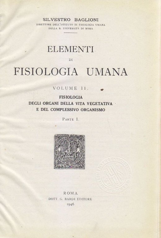 ELEMENTI DI FISIOLOGIA UMANA volume II Parte I di Silvestro Baglioni libro 1946