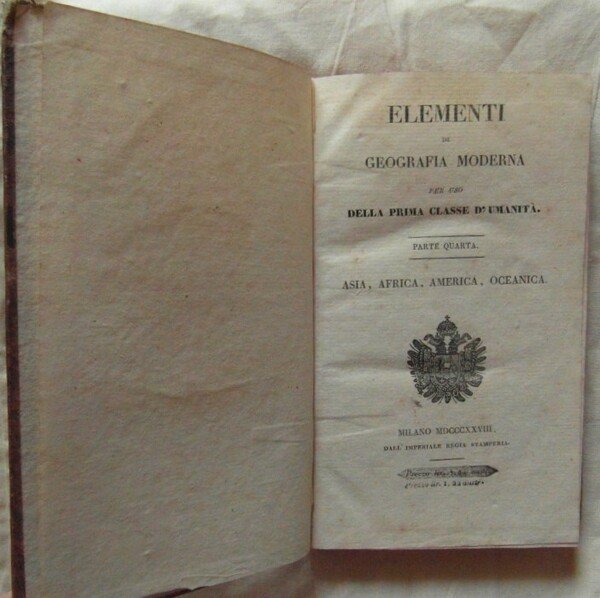 ELEMENTI DI GEOGRAFIA MODERNA PER USO DELLA PRIMA CLASSE D'UMANITA'. PARTE QUARTA. ASIA, AFRICA, AMERICA, OCEANICA.