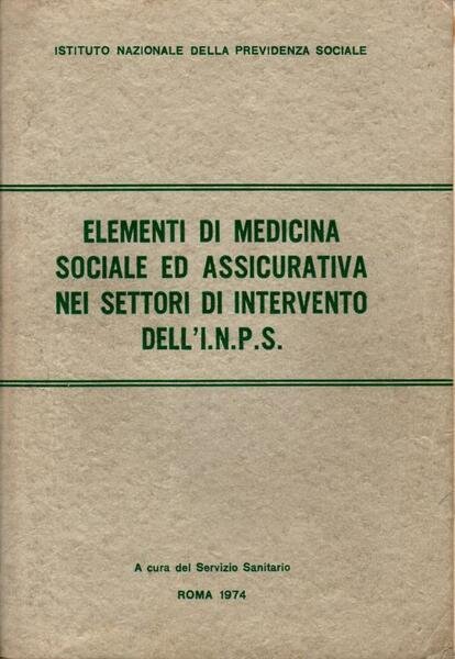 "Elementi di medicina sociale ed assicurativa nei settori di intervento dell'I.N.P.S.", edizione 1974, pp. 650.