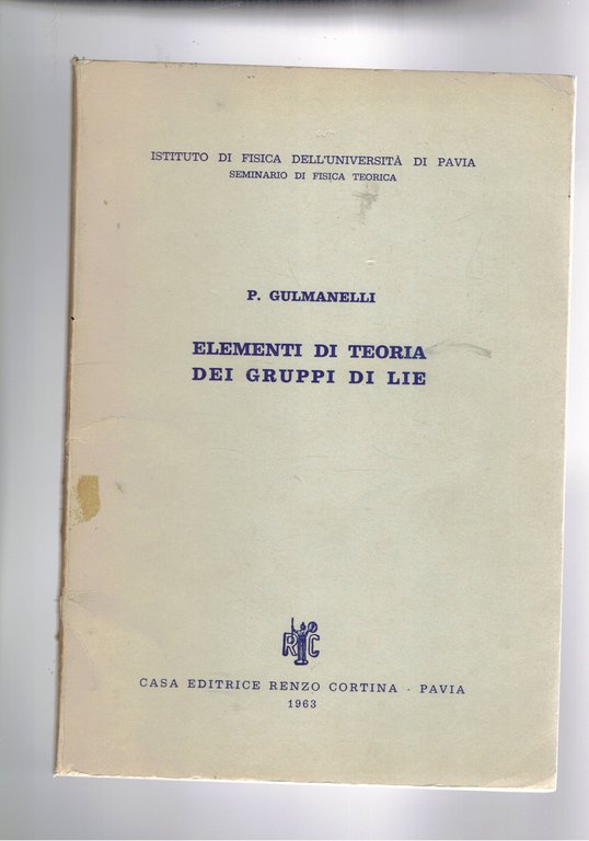 Elementi di teoria dei gruppi di Lie. Dispensa universitaria.