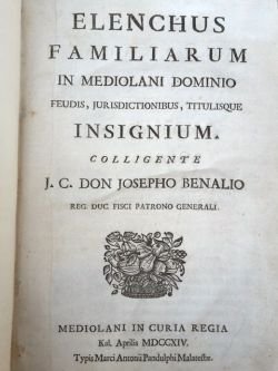 Elenchus familiarum in Mediolani dominio feudis, jurisdictionibus, titulisque insignium. [-Vicecomitum Burgi Ratti marchionum, Castri Spinae, Brignani et Pagatiani feudatariorum genealogica monumenta].