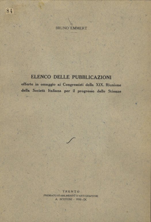 Trento, A. Scotoni, 1930, in-8, br. edit., pp. 10. Estratto.