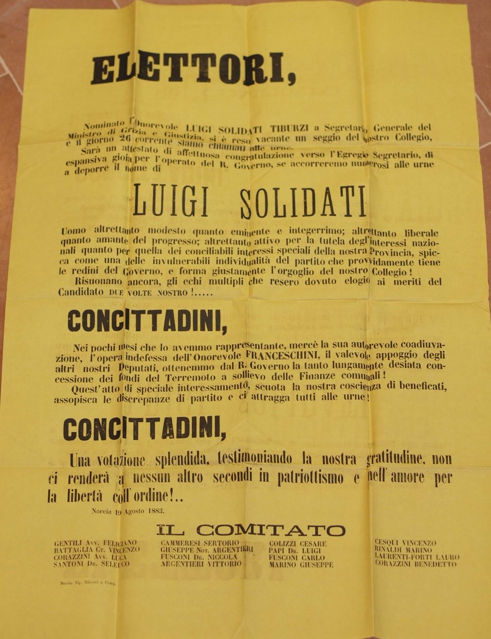 ELETTORI CANDIDATURA LUIGI SOLIDATI NORCIA 19 AGOSTO 1883