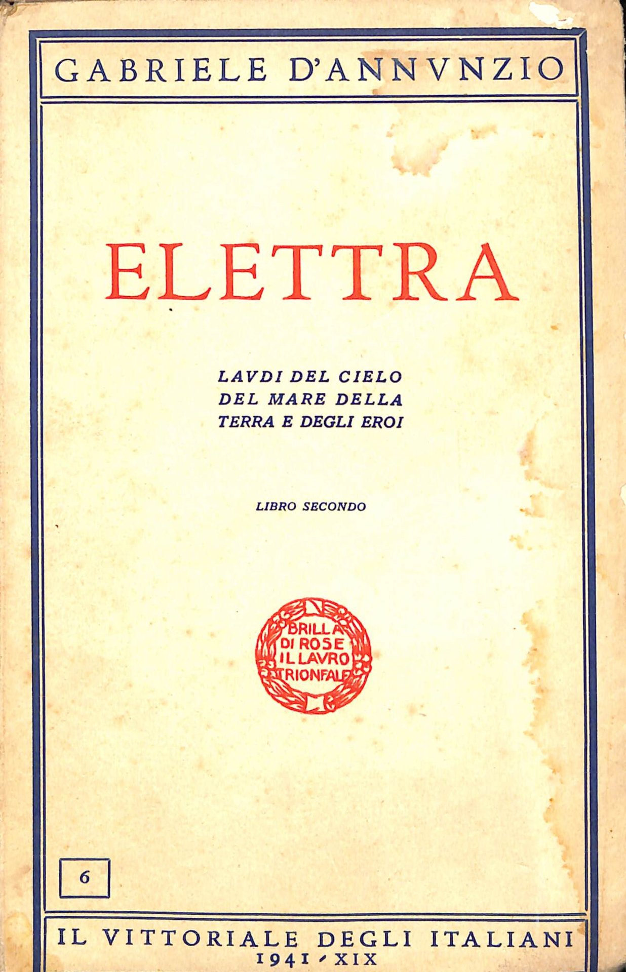 Elettra : Laudi del cielo del mare della terra e degli eroi, libro secondo. 217 p. ; 21 cm. 851 - Ba Buono (Good)
