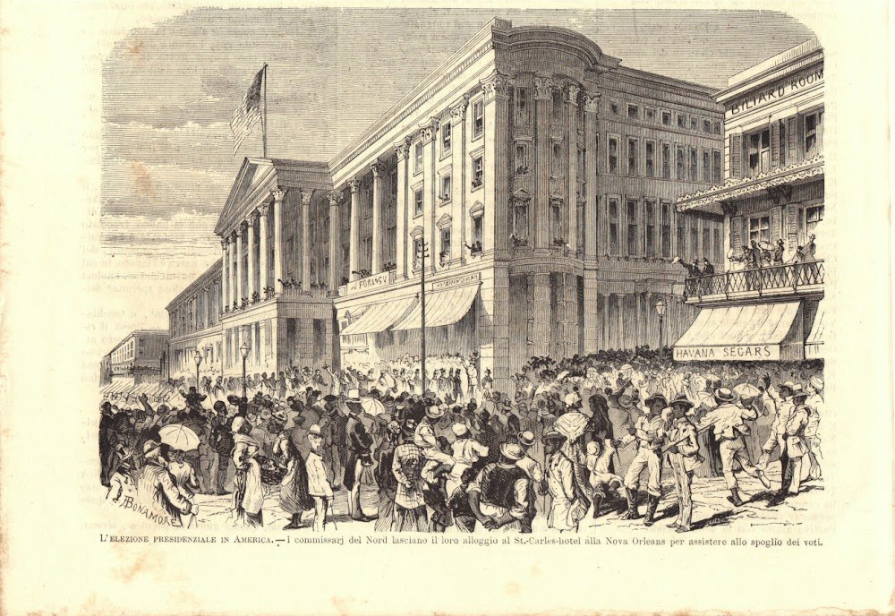 Elezioni presidenziali in America. I commissari del Nord lasciano il loro alloggio... Stampa 1876