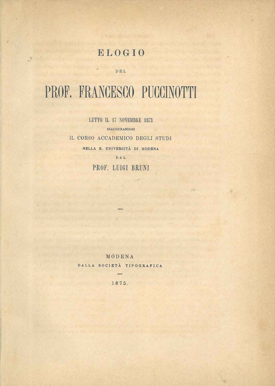 Elogio del prof. Francesco Puccinotti letto il 17 novembre 1873 inaugurandosi il corso accademico degli studi nella R. Università di Modena