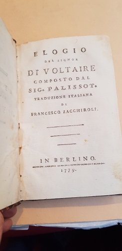 Elogio del sig. di Voltaire composto dal sig. Palissot. Traduzione italiana di Francesco Zacchiroli