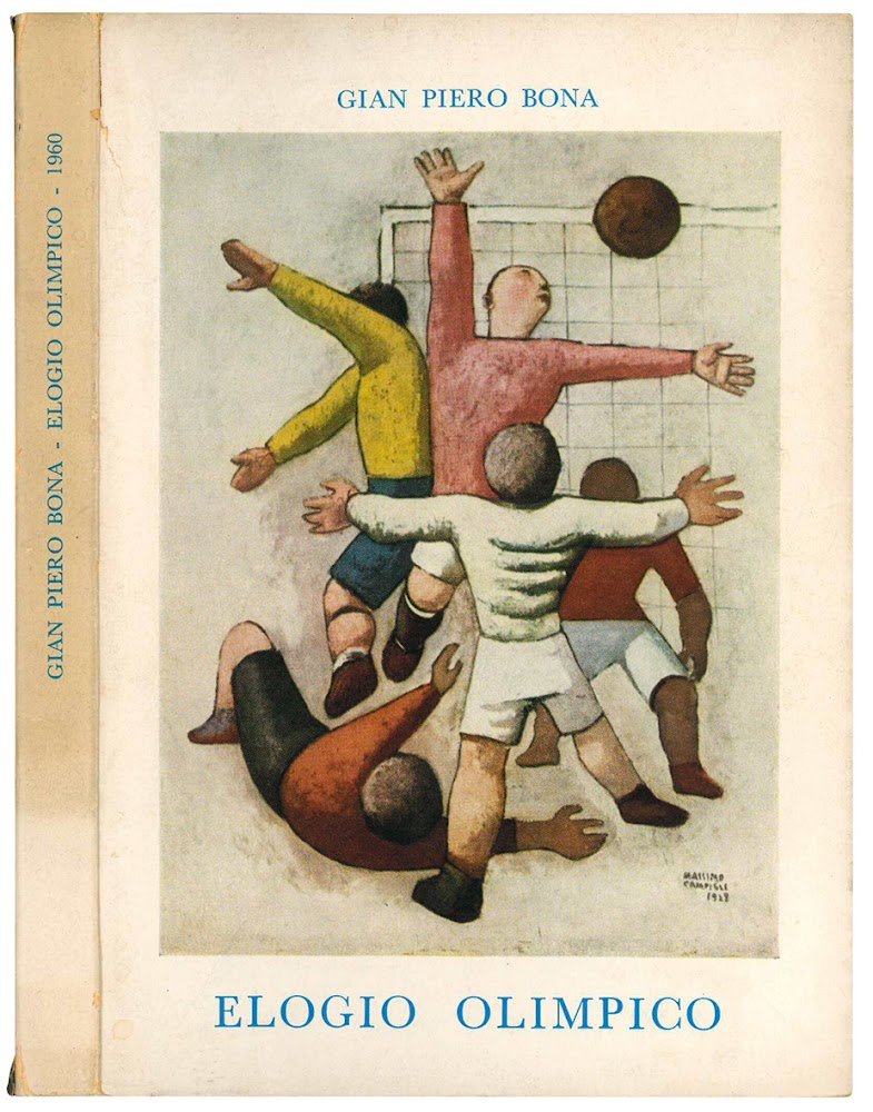 In 16mo (mm 176x121); pp. 158, [2], XII c. di tav. fuori testo. Testo stampato su carta azzurra. Brossura editoriale illustrata a colori, piccolo strappo verticale in corrispondenza della cerniera anteriore. Prima edizione di questa antologia di versi sportivi, dall'antichità al Novecento, pubblicata in 1000 esemplari in occasione dei giochi olimpici di Roma del 1960. L'esemplare offerto è il n. 778.