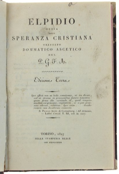 ELPIDIO ossia SPERANZA CRISTIANA. Trattato dommatico ascetico del P. G. F. A. Edizione terza.