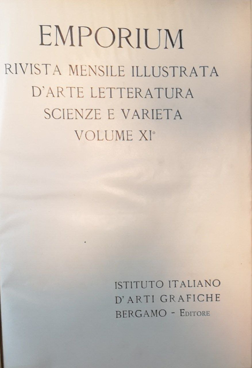 Emporium. Rivista mensile illustrata d'arte letteratura scienze e varietà. Volume XI. Anno 1900. Annata completa.