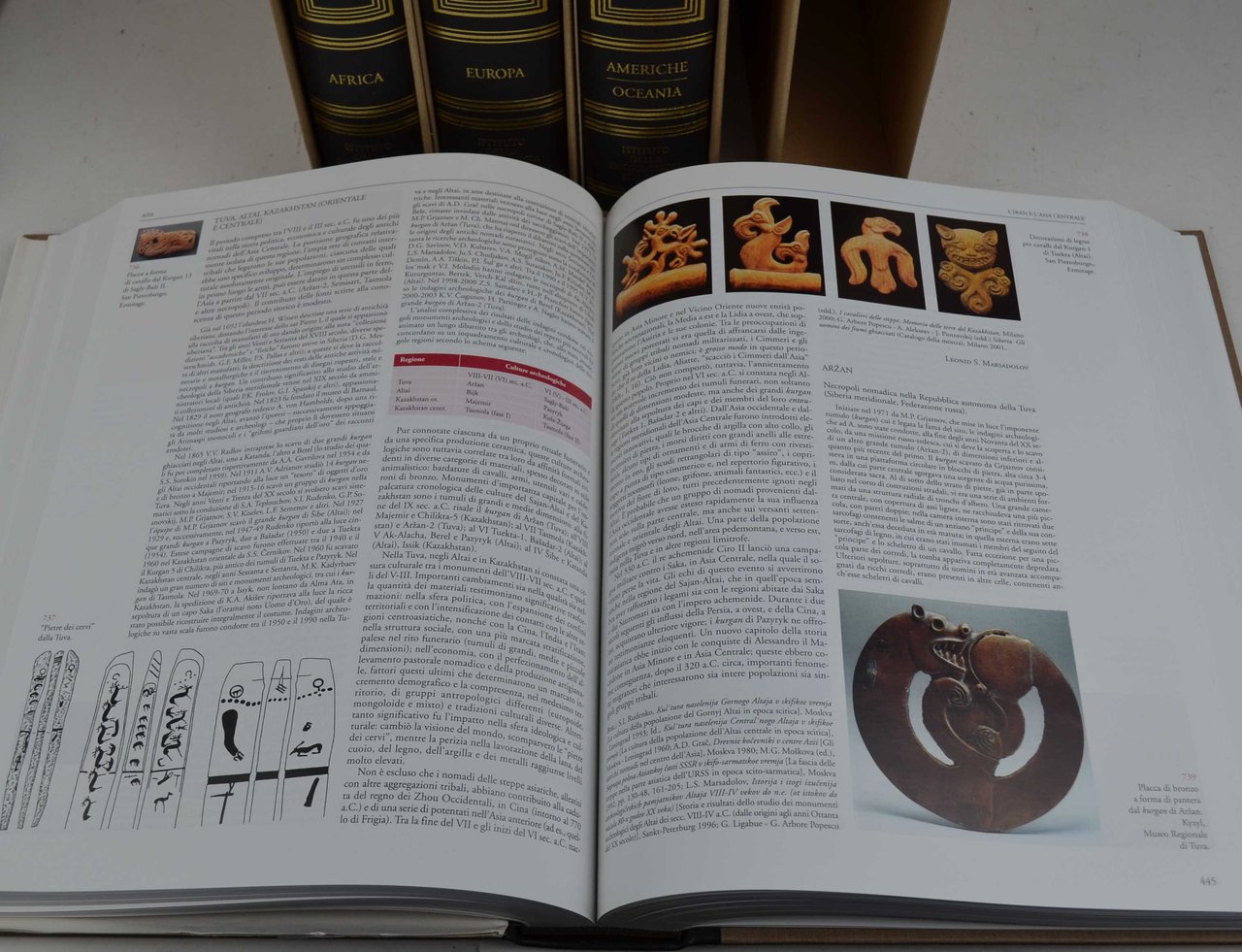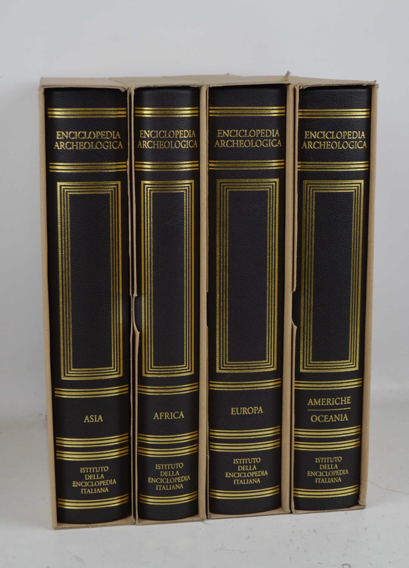 Quattro volumi di cm. 31, pp. 1000 ca. ciascuno. Con molissime immagini in nero ed a colori. Leg. edit in mezza pelle, dorsi lisci con titoli in oro. Ciascun volume entro custodia edit. Perfetta conservazione, in stato di nuovo. I quattro volumi titolano: Asio, Africa, Europa, Americhe-Oceania.
