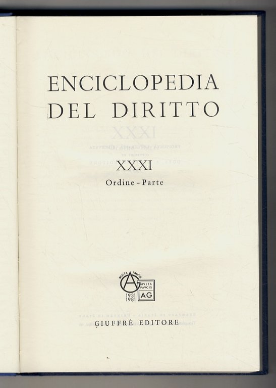 Enciclopedia del Diritto. Fondata da Francesco Calasso. Volume XXXI. Ordine - Parte.