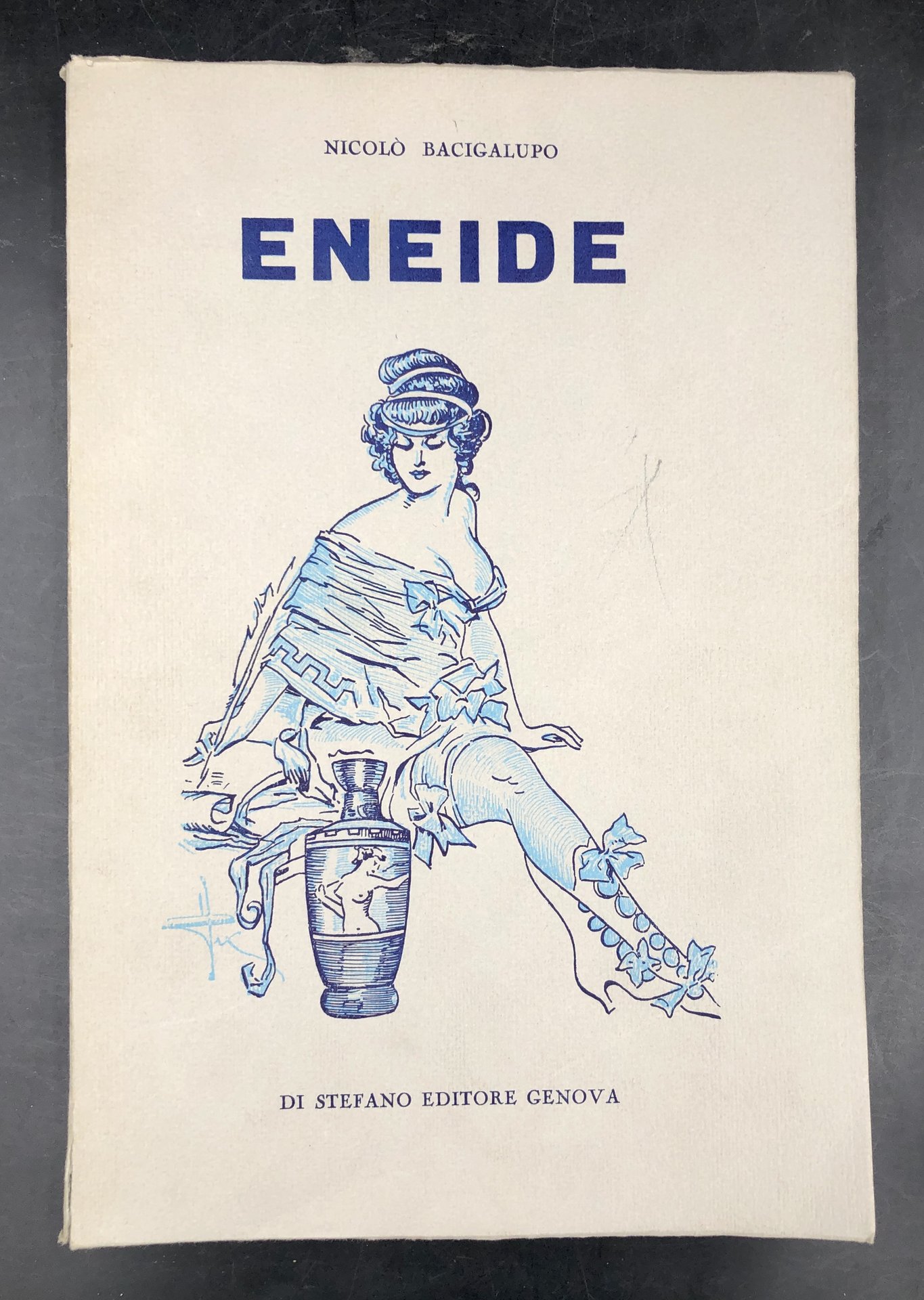 ENEIDE. Testo di reduce troiano [Poema e parodia in DIALETTO GENOVESE[]. Esemplare n° 617 di 3000 copie illustrate. Testo in dialetto genovese riquadrato entro cornici decorate in rosso.