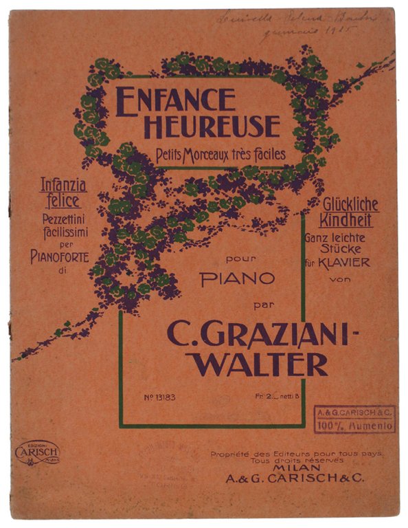 (Codice ZA/0253) In 4° (30,5x23 cm) 12 pp. Bossura con copertina figurata, disegno ripetuto in verde al frontespizio. Timbrino dell'editore, firma e data, lievi segni d'uso. Buono stato. ~~~ SPEDIZIONE IN ITALIA SEMPRE TRACCIATA