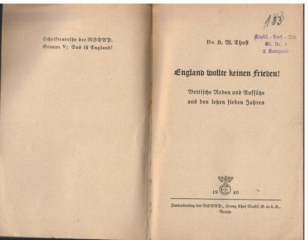 - Nazismo Seconda guerra mondiale Lingua tedesca Propaganda, nazista Libro originale 1940