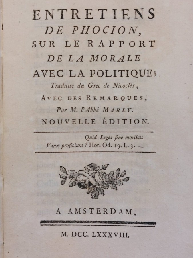 Entretiens de Phocion, sur le rapport de la morale avec la politique; traduite du Grec de Nicoclès [.]