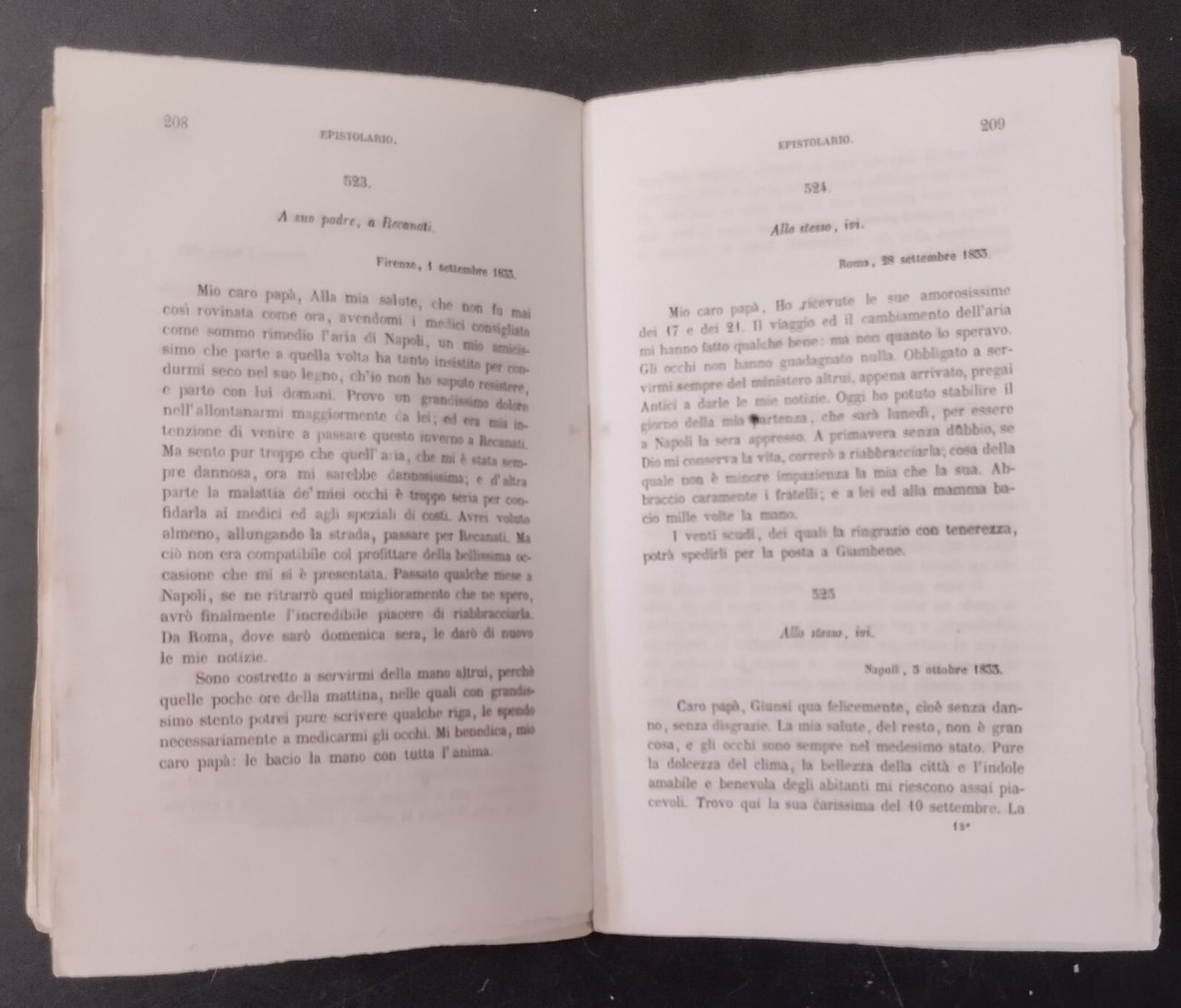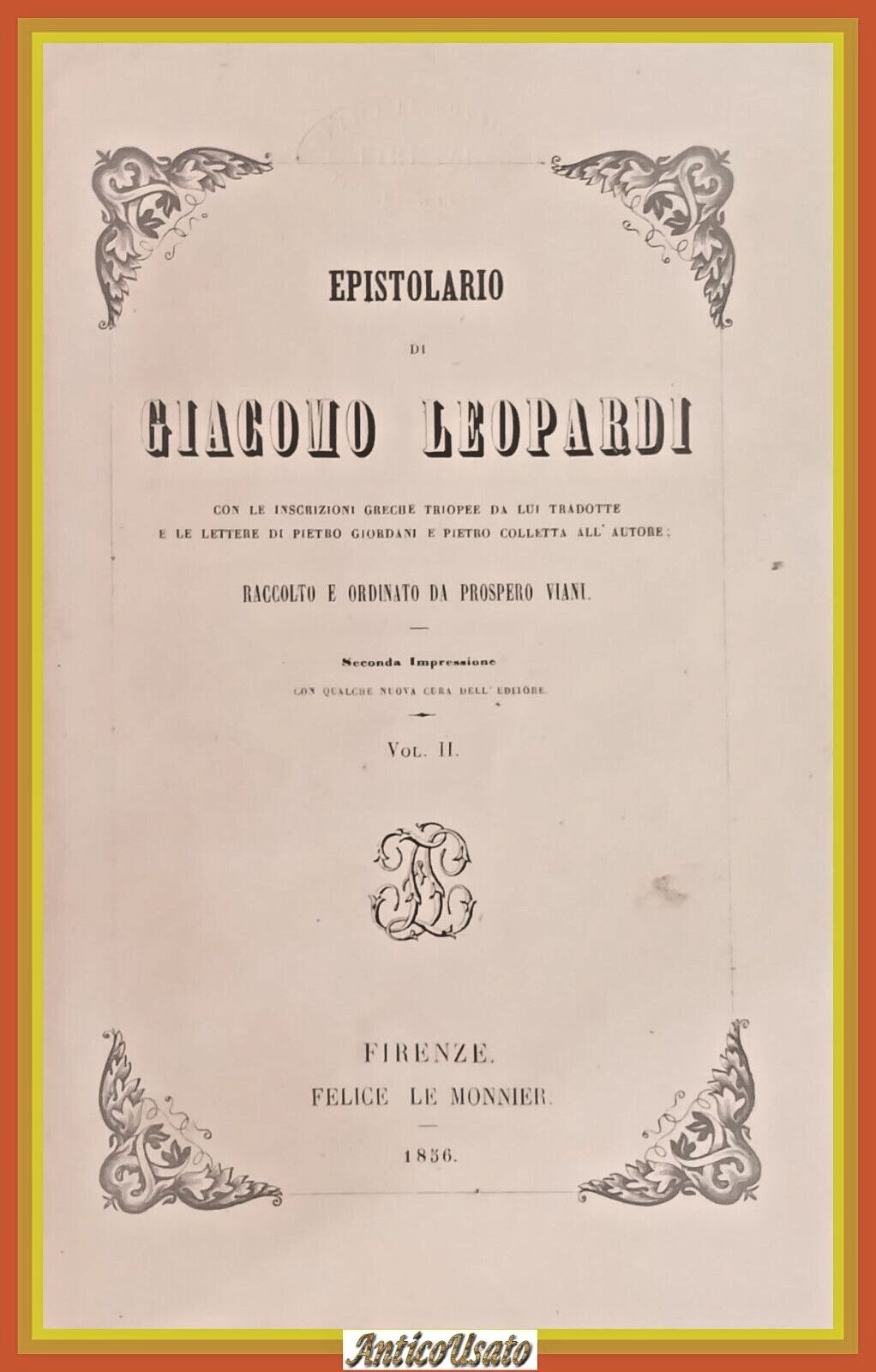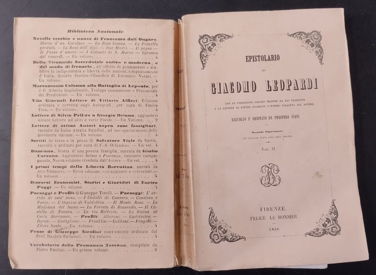 EPISTOLARIO DI GIACOMO LEOPARDI Volume 2 1856 Le Monnier Libro antico