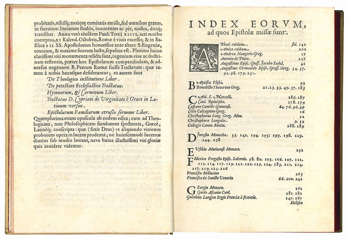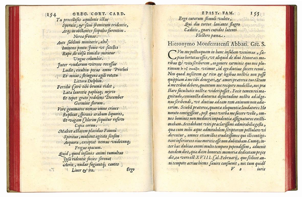 “The letters of Cortese not only display his skill in the classical languages, but also attest to his mastery of them. Benedetto Teocreno [Tagliacarne], writing to Cortese about the style of his letters, declared that they exhibit ‘an excellent choice, an incredible candor, an admirable force and efficiency in words; in sentences, their own – totally fitting – weightiness, a delightful variety, a most becoming charm, a perspicacity on both sides – to a degree I had hardly believed could be shown today' ” (F.C. Cesareo, op. cit., p. 160).