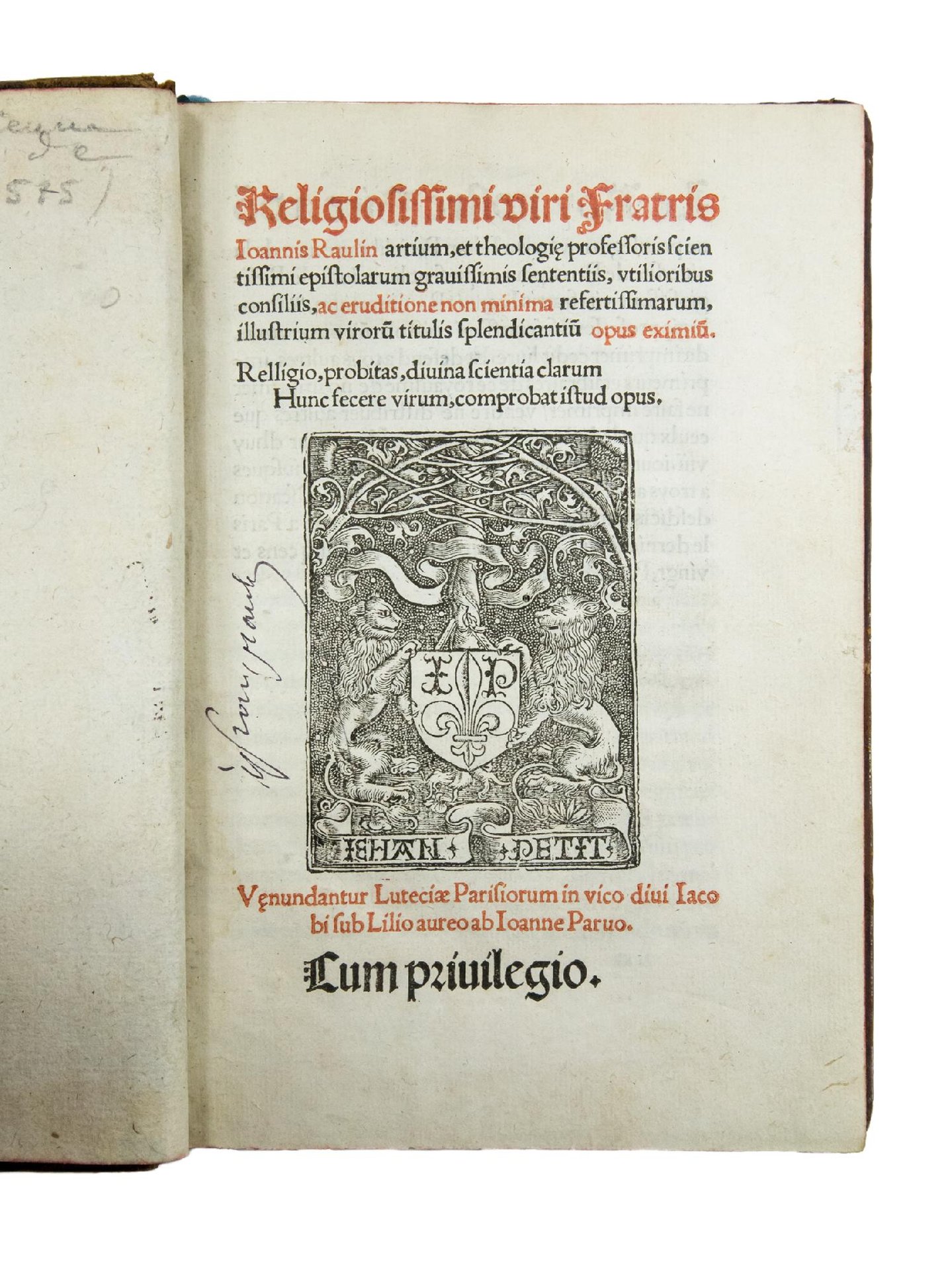 FIRST EDITION of this collection of 56 letters published by the author's nephew Robert Raulin. “On trouve, dans la correspondence de Raulin, la même doctrine de réforme par le retour aux vertus monastiques: chasteté du corps, ‘abstinence' de l'esprit, devotion, paix et concorde, obéissance ou plus simplement ‘la pauvreté et la charité' ” (G.T. Bedouelle, Jean Raulin, in: “Dictionaire de Spiritualité”, Paris, 1932-1995, 13, pp. 156). These ideas are clearly expressed in the letter to the friars of St. Alban in Basel (ll. LVv-LIXr).