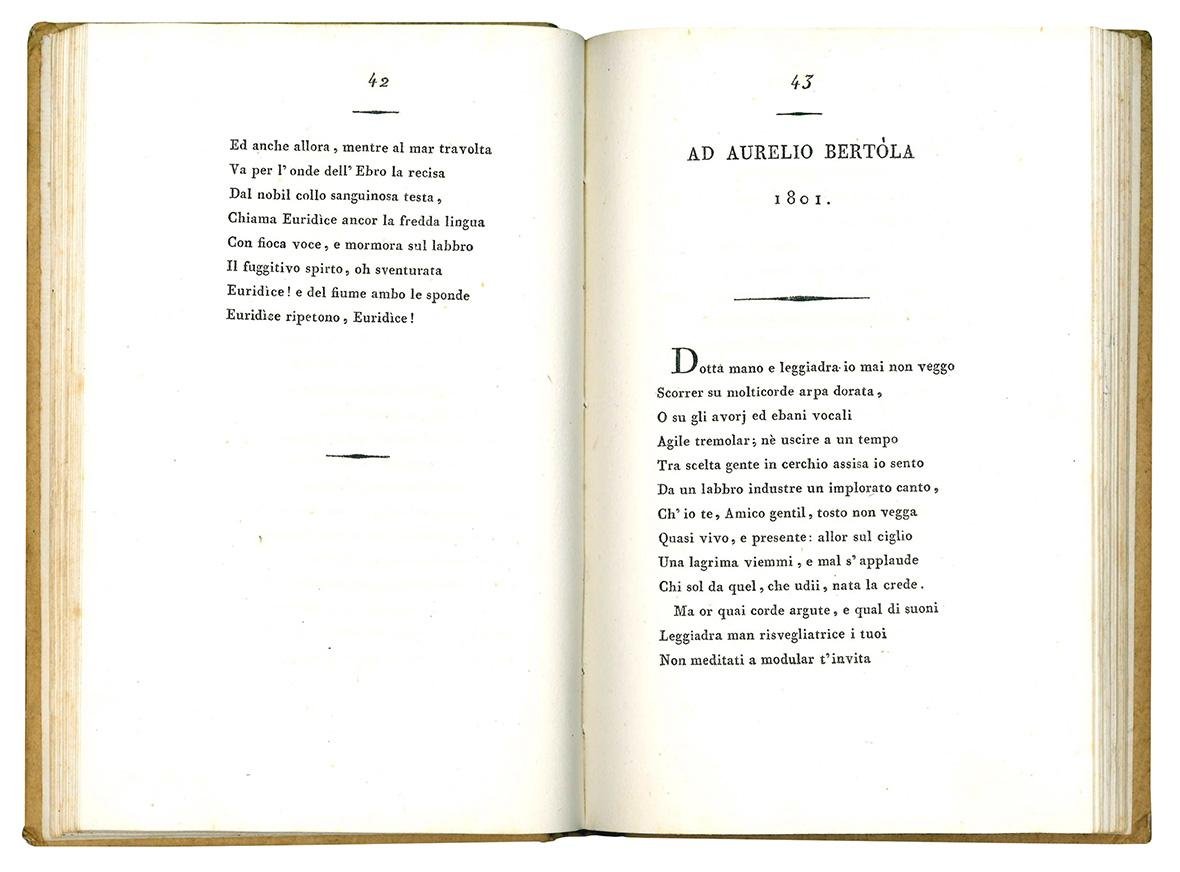 Edizione originale dell'opera nella quale sono raccolti dodici componimenti indirizzati a personaggi scomparsi come Isabella Albrizzi, Elisabetta Mosconi, Giacomo Vittorelli, Lesbia Cidonia, Aurelio Bertola.