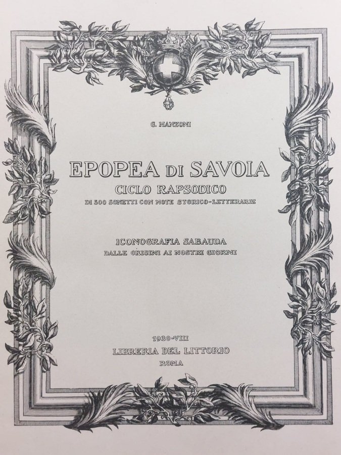 Epopea di Savoia. Ciclo Rapsodico di 500 sonetti con note storico-letterarie. Iconografia sabauda dalle origini ai nostri giorni.