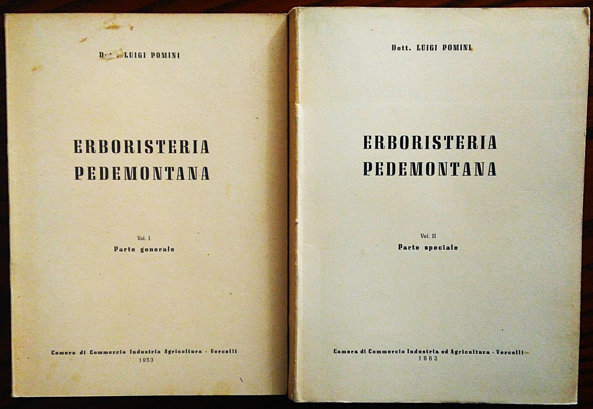 Vercelli, Camera di Commercio Industria Agricoltura, 1953-1962. 16°, due volumi, pp. 125; 322, alcune illustrazioni, foglietto di errata al secondo volume, brossura editoriale. Piccola abrasione al piatto anteriore del primo volume, bella copia.