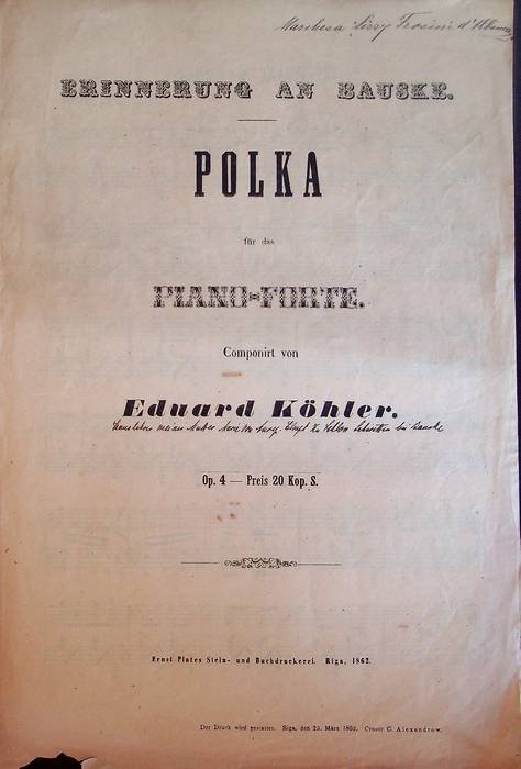 Erinnerung an Bauske: polka für das Piano-Forte: Op. 4.