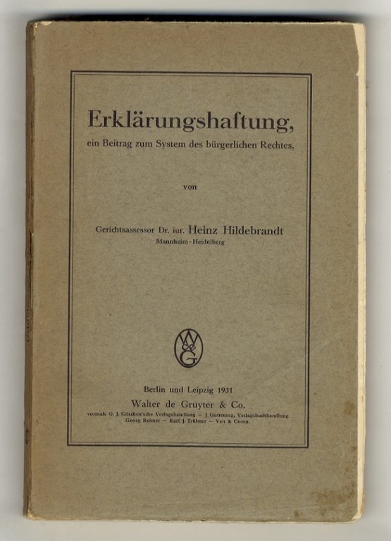 Berlin und Leipzig, Walter de Gruyter, 1931, in-8, brossura editoriale (mancanze marginali molto leggere), pp. 311, [1].
