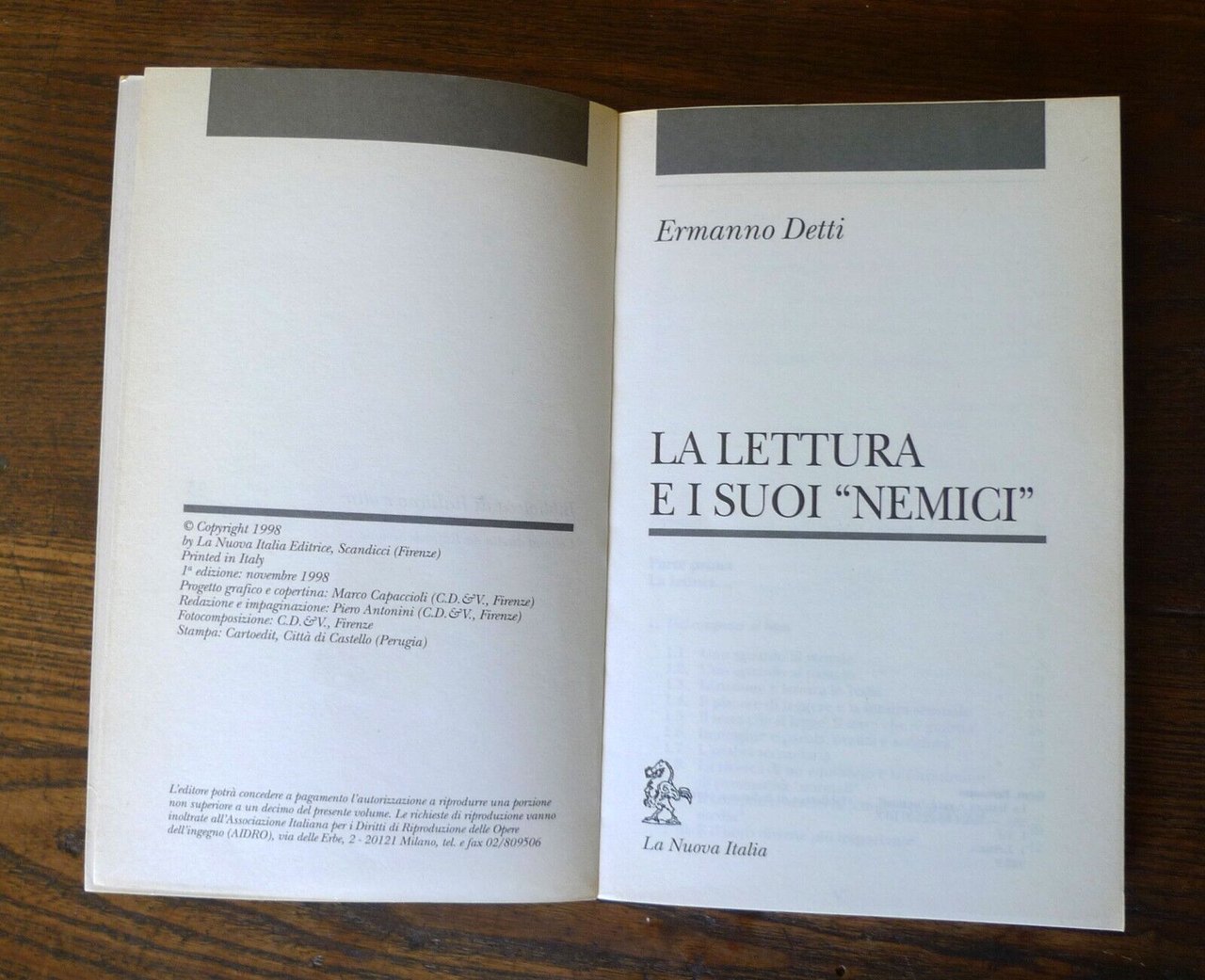 Ermanno Detti,LA LETTURA E I SUOI "NEMICI".La Nuova Italia Editrice, Scandicci (FI) 1998,prima edizione: novembre 1998,brossura, 21x13 cm., pp.XIV-214,BIBLIOTECA DI ITALIANO E OLTRE 25,Collana diretta da Raffaele Simone,ISBN: 88-221-3110-X,peso: g.250