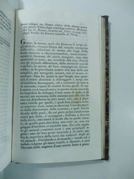Esame critico delle diverse specie del genere Vultur degli ornitologi moderni. Memoria del sig. Ruppel dal T. 21 Annales des Sciences naturelles. (Stralcio da: Nuovo giornale de' letterati. N. 57. 1831)